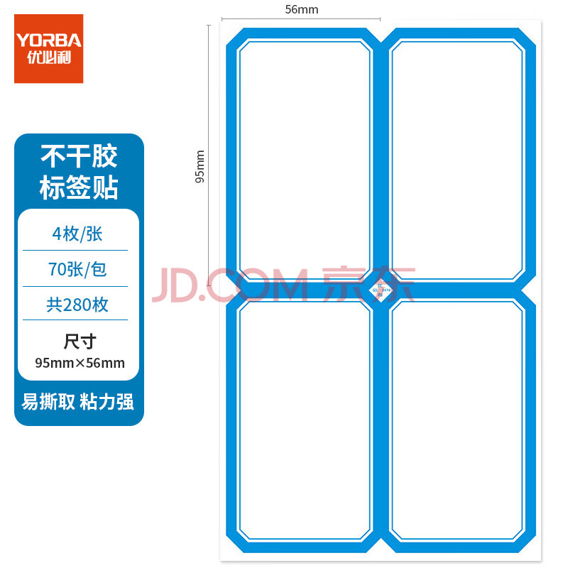 商品相册:优必利 280枚95mm×56mm不干胶标签贴纸自粘性标贴 口取纸 4枚/张 70张/包 3470蓝色第