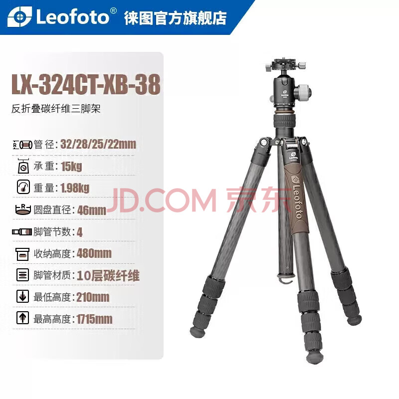 商品相册:徕图(Leofoto)三脚架云台 便携反折专业摄影摄像旅行轻便双全景球形云台三脚架云台套装 LX-324CT+XB-38第