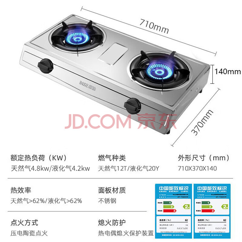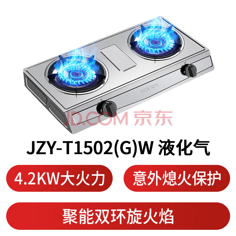商品相册:樱雪(INSE)燃气灶双灶具 台式双灶 煤气灶双灶 4.2kw猛火升级 家用不锈钢双眼台灶熄火保护T1502液化气第1张/共9