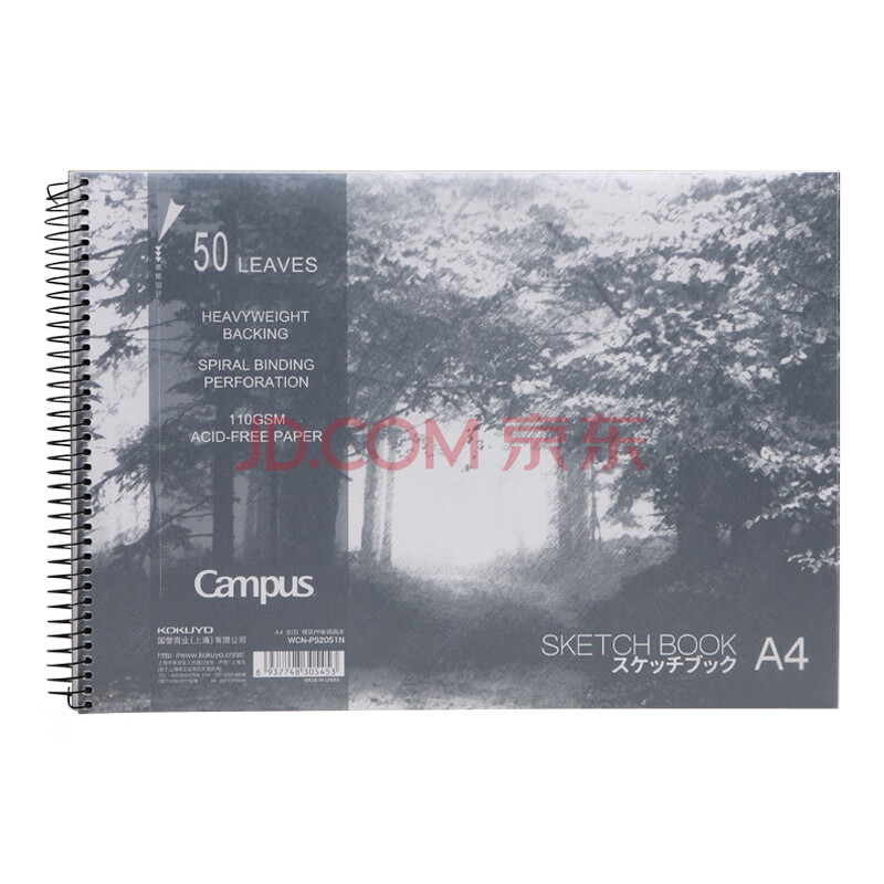 商品相册:国誉(KOKUYO)A4图画本学生绘画笔记本子Campus PP面螺旋装订图画本素描本 50张1本 WCN-PS2051N第