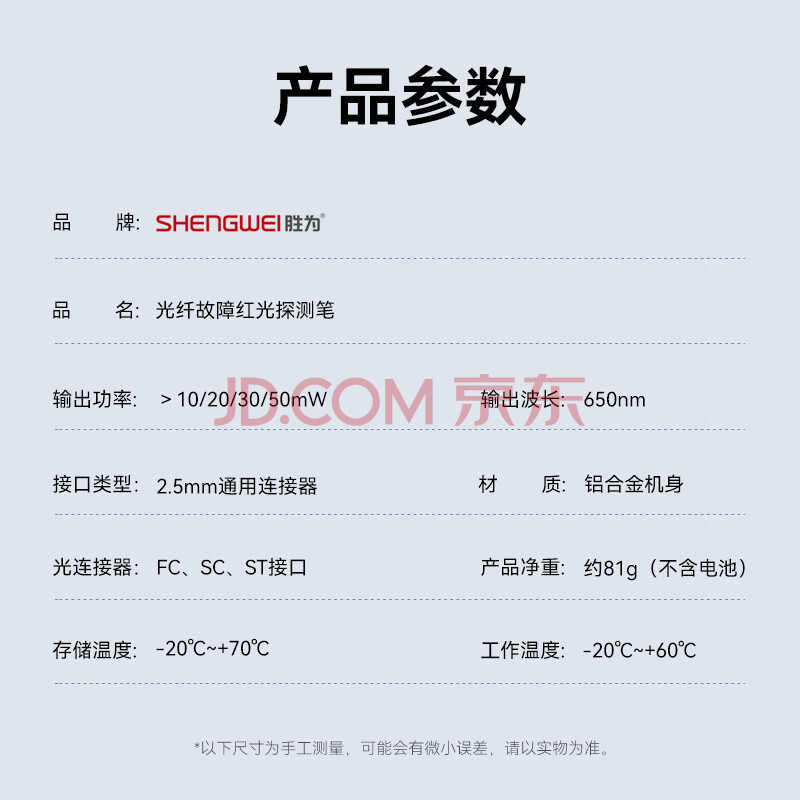 商品相册:胜为红光光纤测试笔 20mW红光源 断点故障测试仪通光笔/打光笔 SC/FC/ST接头冷接子通用FB-120第