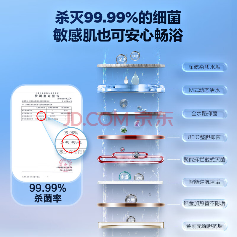 商品相册:海尔(Haier)电热水器60升 JN3 鲜活水3D巨能洗 9倍增容大水量终身免换镁棒家用储水式一级能效节能第