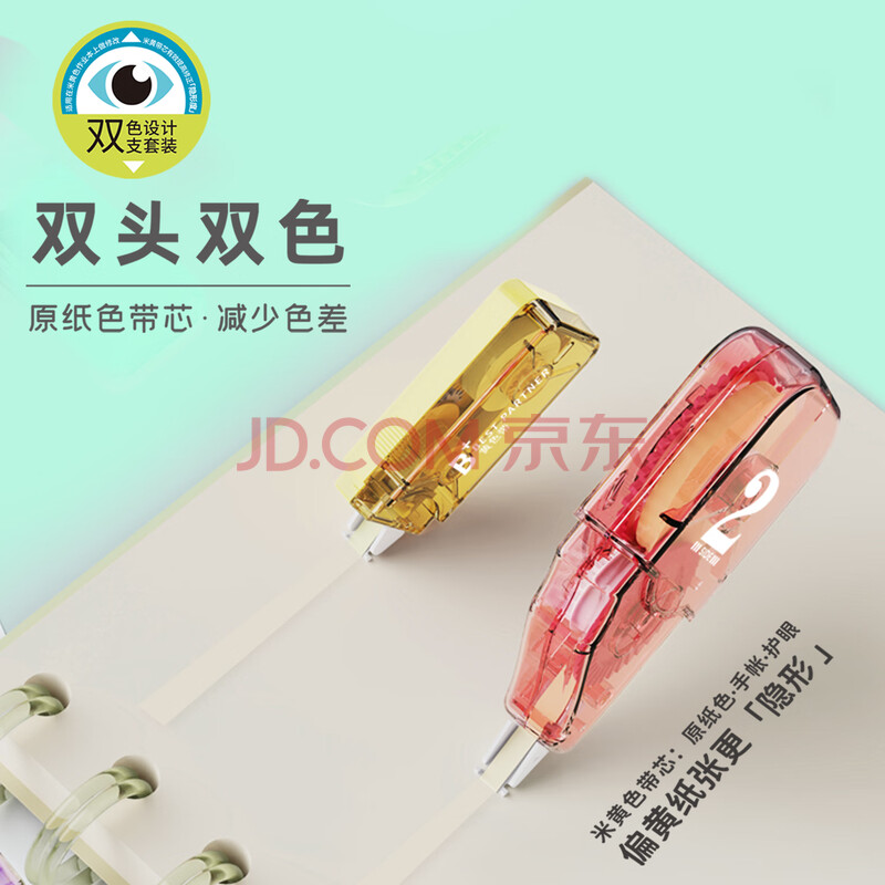 商品相册:乐普升( LPS )原纸色隐形修正带小学生专用双头高颜值大容量实惠装米黄色涂改带初中改正带开学文具9932第