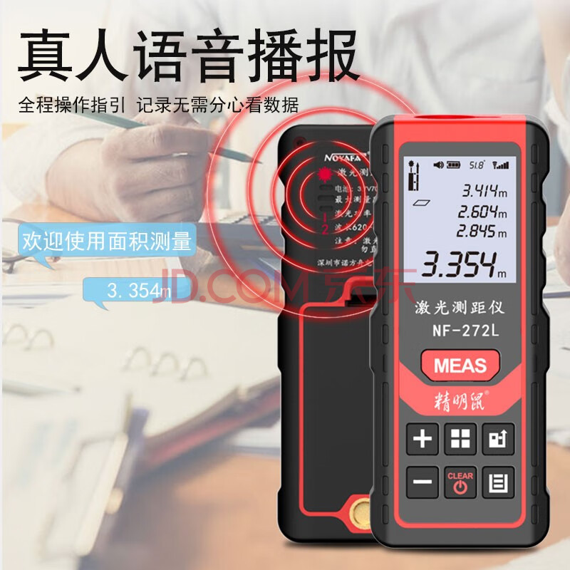 商品相册:精明鼠 NF-272L 100米充电语音款 手持式激光测距仪 电子水平泡红外线测量仪 量房仪 电子尺 测量工具第1张/共7