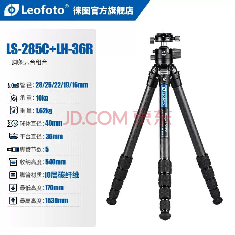商品相册:徕图(Leofoto)三脚架 云台 碳纤维手机相机微单单反摄影摄像轻便旅行风光三脚架云台套装 LS-285C+LH-36R第