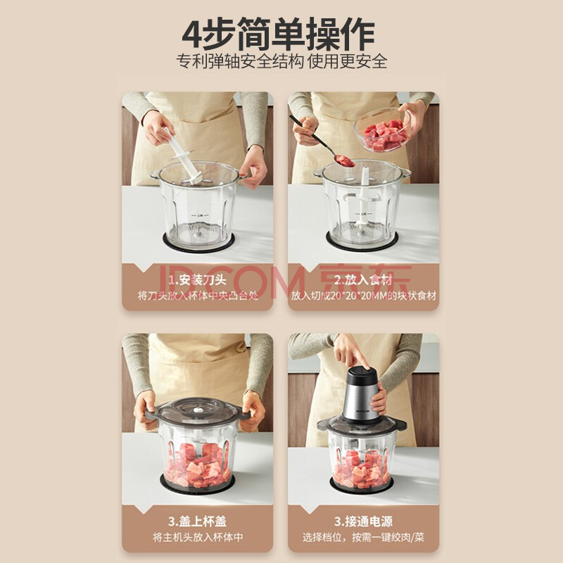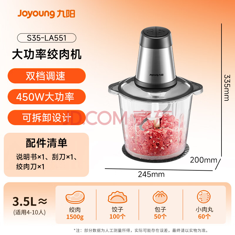 商品相册:九阳(Joyoung)绞肉机家用电动多功能料理机婴儿辅食机切菜绞馅不锈钢碎肉3.5升大容量 S35-LA551第
