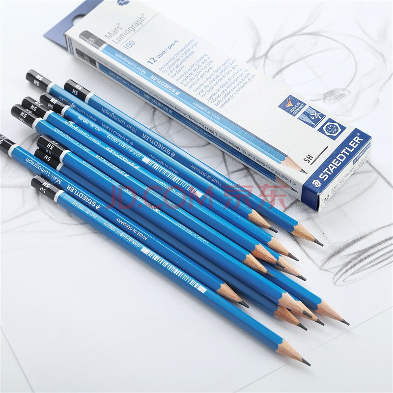 商品相册:施德楼(STAEDTLER)5H素描铅笔 100经典蓝杆专业美术手绘速写专用初学者考试画画工具12支/盒第