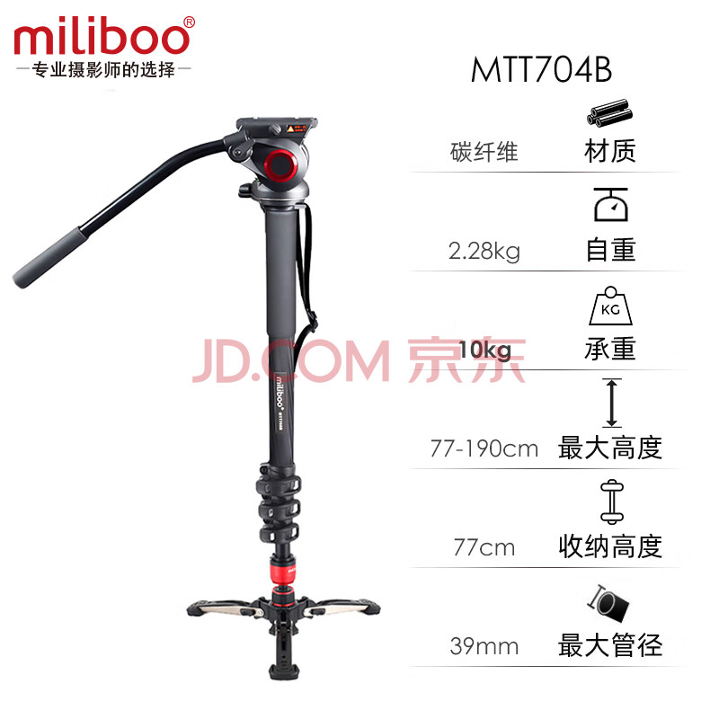 商品相册:miliboo米泊铁塔MTT704B碳纤维独脚架单反相机支架摄像机长焦镜头单脚架含液压云台套装第