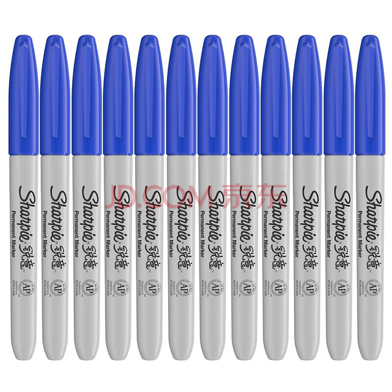 商品相册:锐意(Sharpie)细头马克笔油性防水防褪色速干耐用记号笔商务办公标记进口蓝色12支装美术写生水彩笔美育第