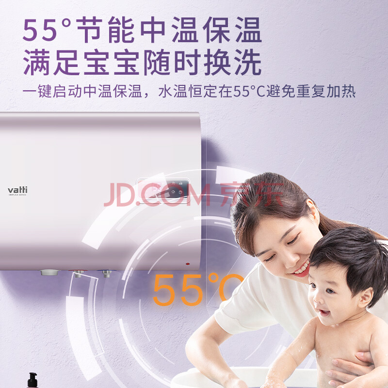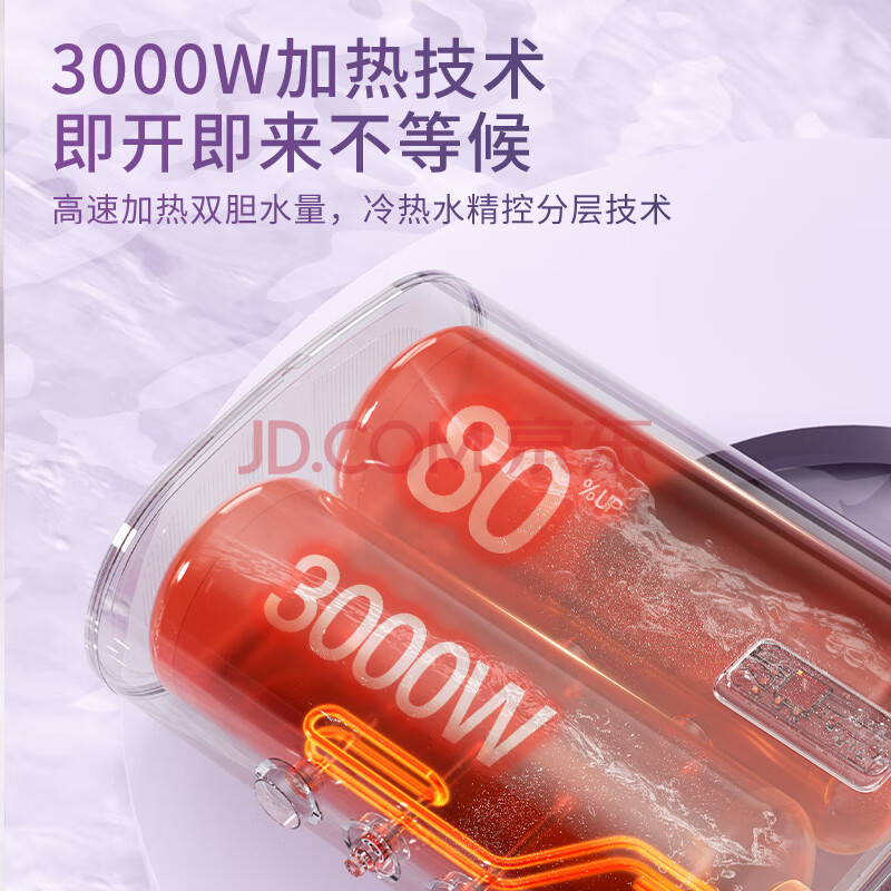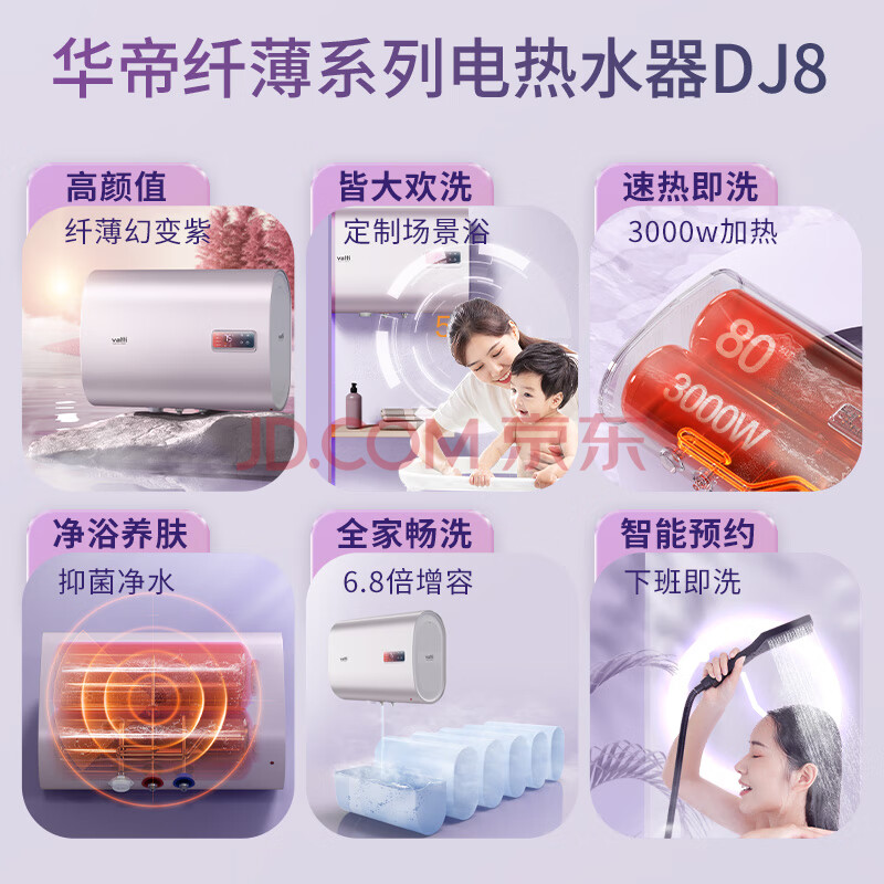 商品相册:华帝(VATTI)DDF60-DJ8纤薄幻彩3000W速热60L容量6.8倍增容智能预约抑菌净水双重防电中温保温电热水器第