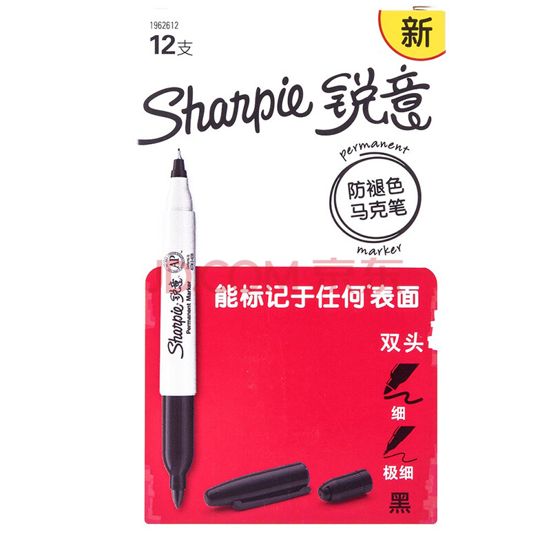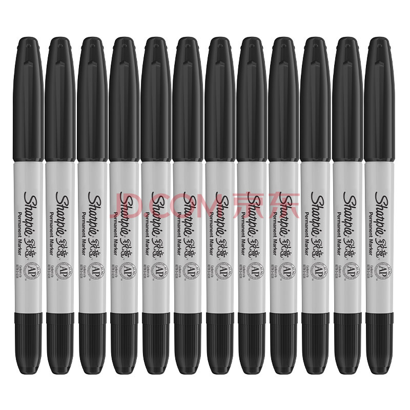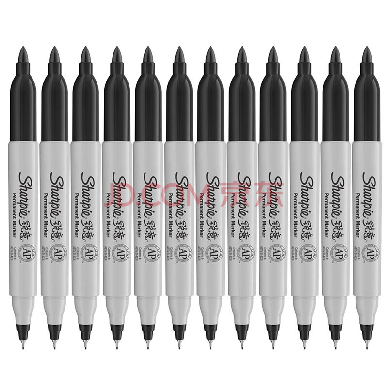 商品相册:锐意(Sharpie)双头细0.5mm宽2.5mm黑色油性马克笔12支装防水速干记号海报明星发布会签名笔签字美术写生美育第