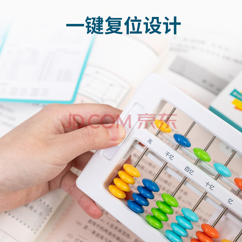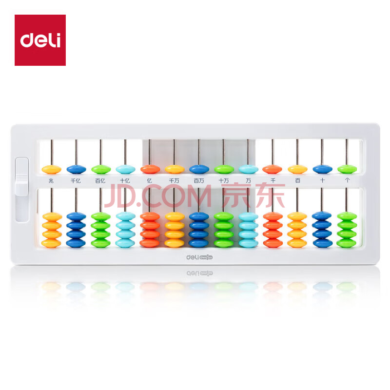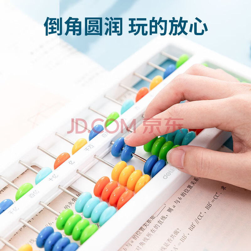 商品相册:得力(deli)儿童算盘二年级下 5珠13档珠心算加减法数学教具教材同步 一键还原附珠算口诀表生日礼物开学文具第1张/共4