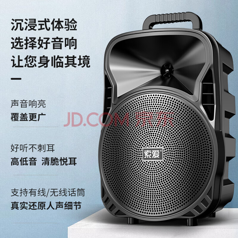 商品相册:索爱(soaiy)8吋广场舞音响大功率便携式户外重低音蓝牙k歌专用大音量移动拉杆音箱室外演出设备单话筒ST-809WM第