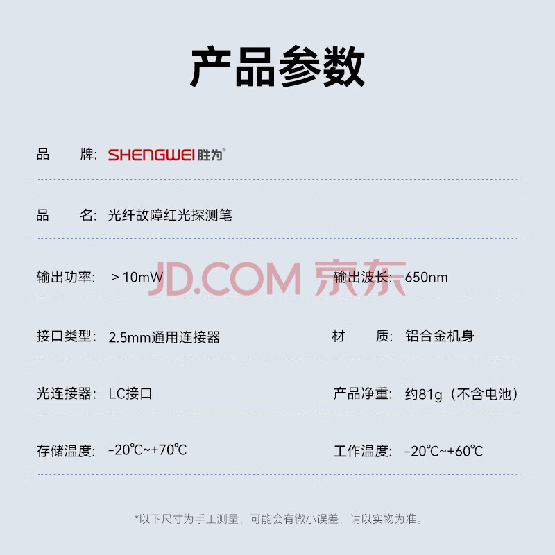 商品相册:胜为红光光纤测试笔 10mW镭射红光源故障断点测试仪 10公里通光笔/打光笔 LC接头冷接子光缆 FB-310A第