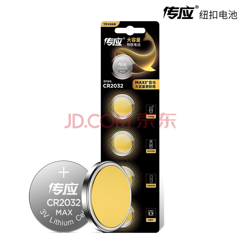 商品相册:传应(NECTIUM)CR2032 纽扣电池 5粒/卡 2卡装(共10粒)适用卷帘门 遥控器 万用表 汽车钥匙第