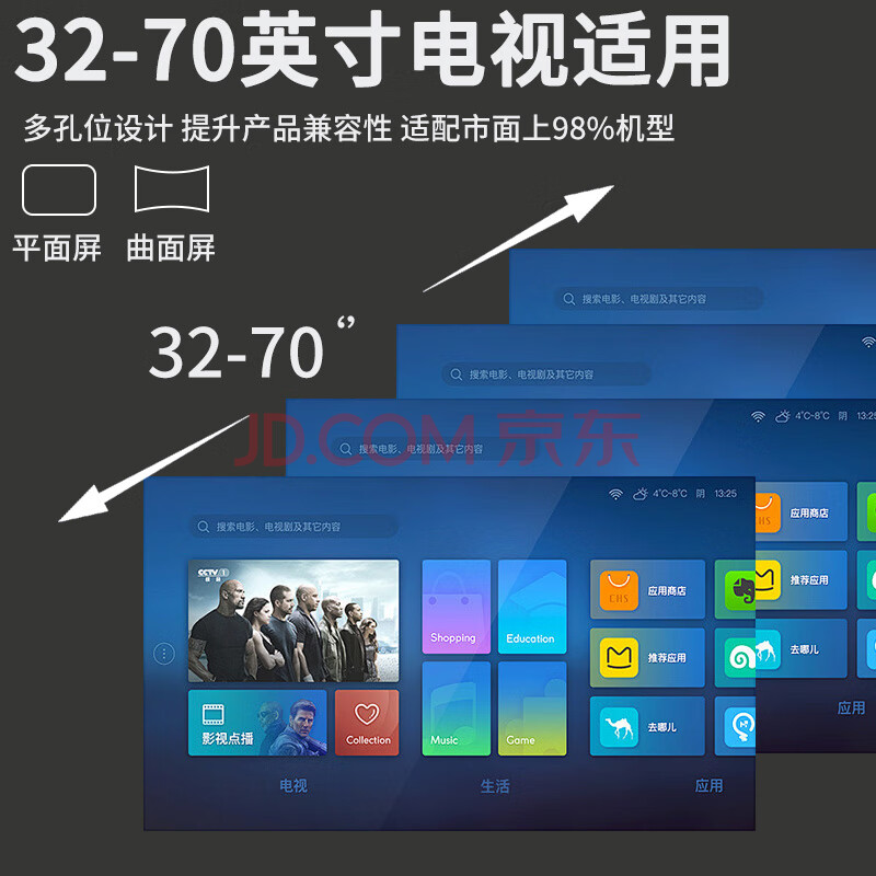 商品相册:七角板电视支架32-70英寸 通用电视挂架加大加厚仰俯角可调电视机架子适配多品牌第