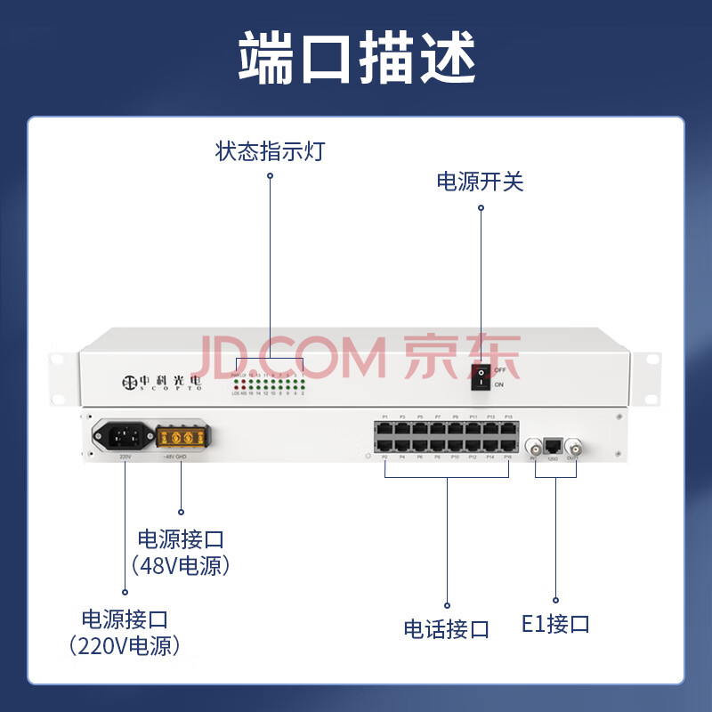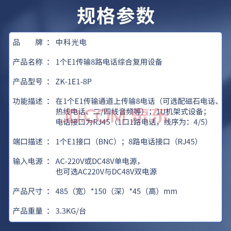 商品相册:中科光电ZK-1E1-8P PCM电话语音复用设备光端机 E1转8路电话FXO/FXS 机架式 1对价第