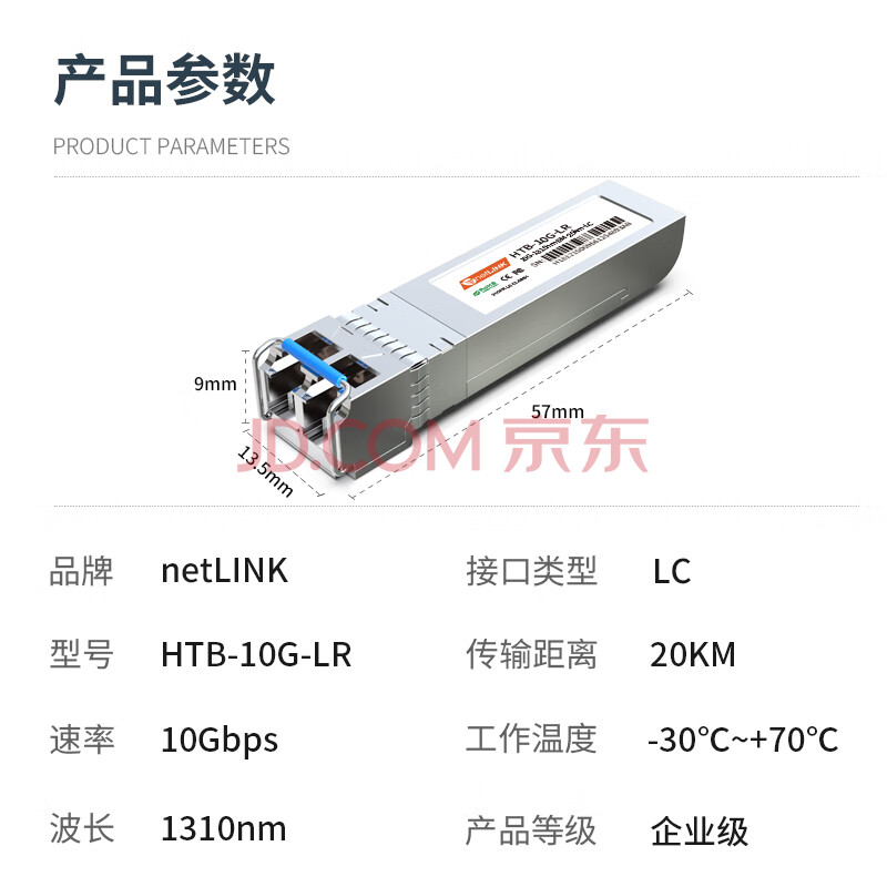 商品相册:netLINK SFP+光模块 万兆单模双纤光纤模块 10G,1310nm,20km 适用国产设备 一只 HTB-10G-LR第