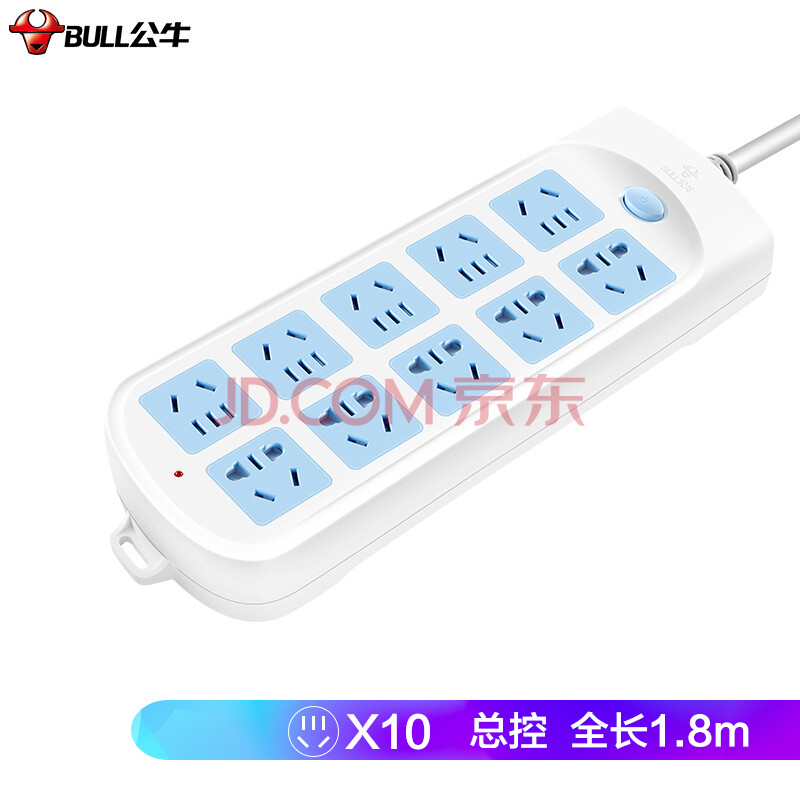 商品相册:公牛(BULL)超功率保护插座/插线板/插排/排插/接线板/拖线板 10位总控开关全长1.8米 GN-605 第