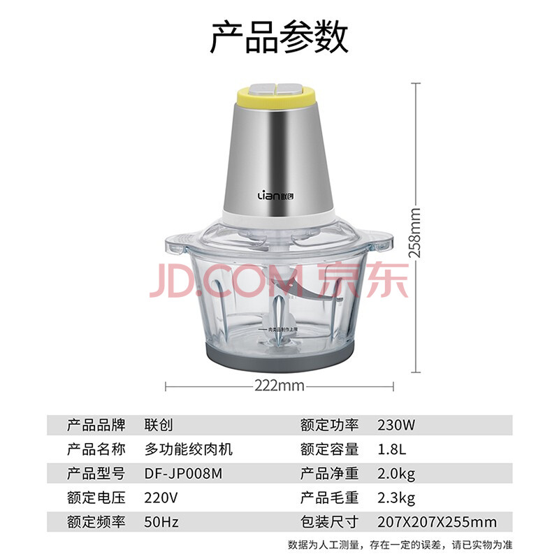商品相册:联创 绞肉机家用电动多功能料理机绞肉馅机双档调速 DF-JP008M第