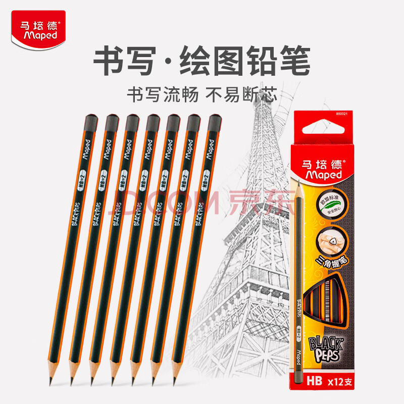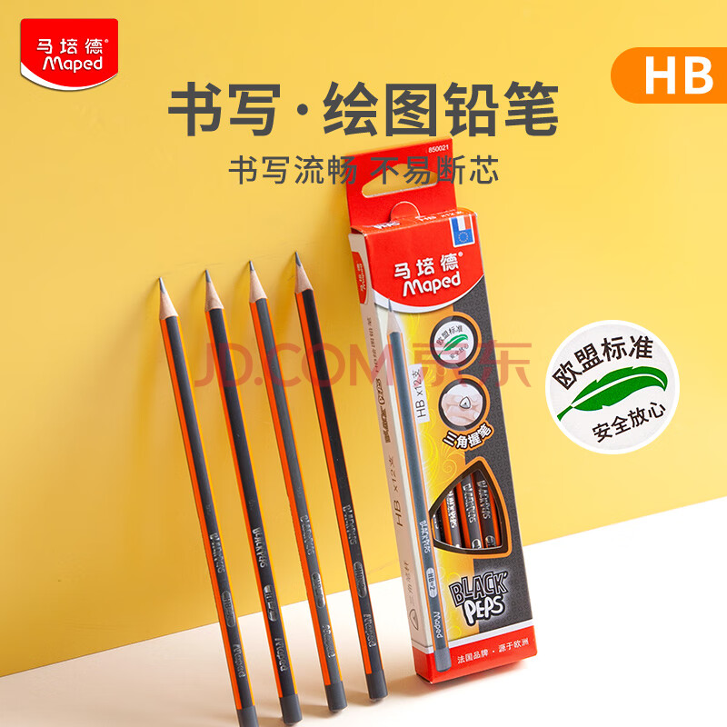 商品相册:马培德(Maped)经典绘图铅笔HB 三角杆铅笔书法练字素描绘图铅笔 学生儿童正姿书写练字笔 850021CH【12支/盒】第