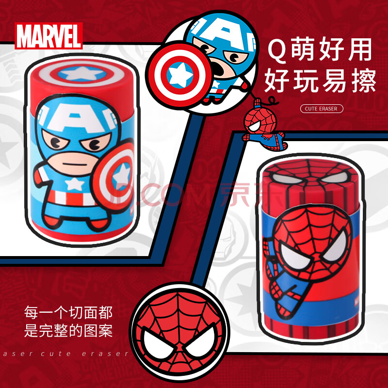 商品相册:迪士尼(Disney)推拉橡皮擦 小学生不留痕创意卡通可爱橡皮 素描美术绘画橡皮擦学生文具学习用品 漫威2个装E0104A第