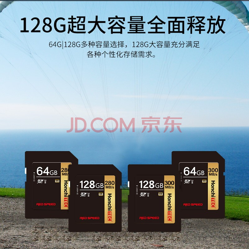 商品相册:宏驰(HONCHITEC)64G SD存储卡 U3 C10 V60 4K荣耀极速版 读速280MB/S 写速160MB/s 极速传输 高清视频录制第