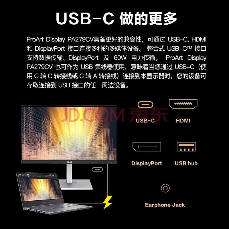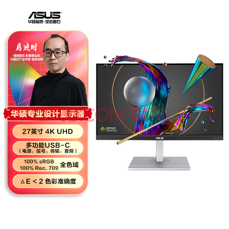 商品相册:华硕ProArt 创梦27 PA279CV 27英寸显示器专业显示器4K 178° 广角65W快充Type-C接口升降带音响第
