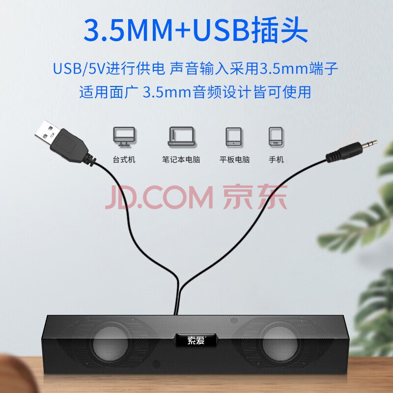 商品相册:索爱(soaiy)SA-A2音响电脑音箱迷你小音箱多媒体笔记本电脑桌面家用网课台式机USB有线低音炮长条音箱普通版第
