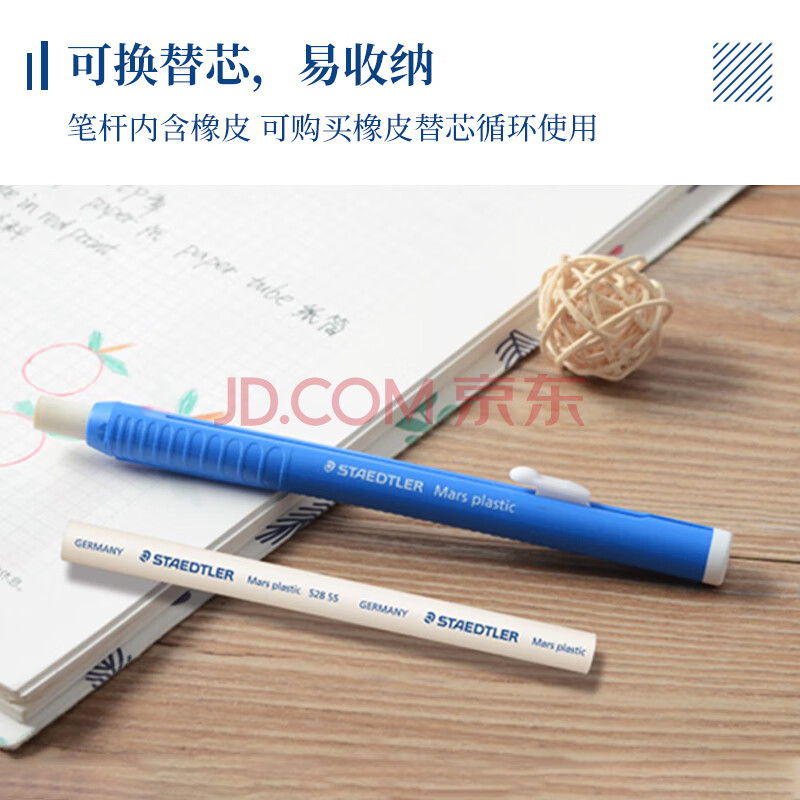 商品相册:施德楼(STAEDTLER)笔式橡皮擦 推拉伸缩带卡锁橡皮 素描绘画少屑干净开学必备办公用品带替芯52850+52855第