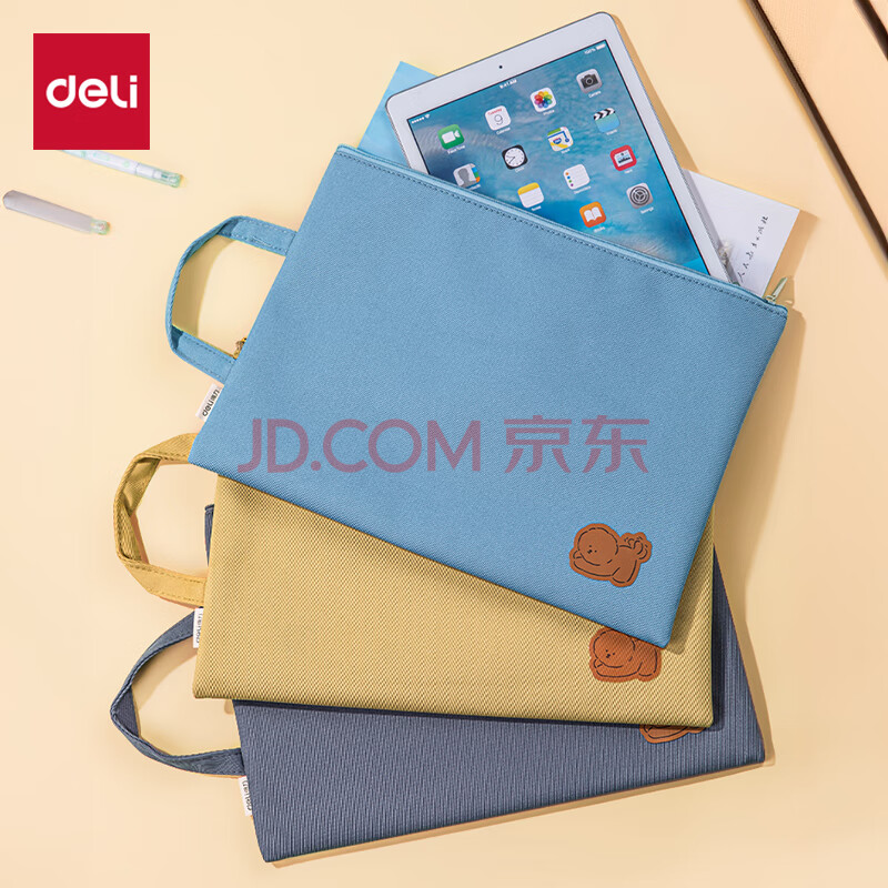 商品相册:得力(deli)手提拉链袋 布质学生资料袋文件袋 试卷收纳袋笔袋 颜色随机开学必备第