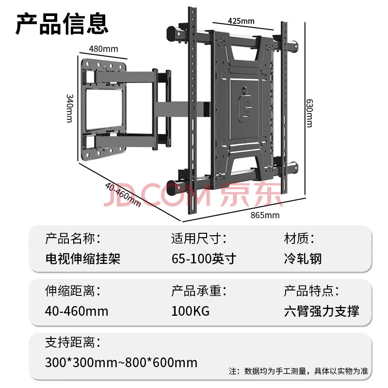 商品相册:创颢 (50-100英寸)电视机挂架伸缩旋转六臂壁挂墙电视支架适用小米海信荣耀雷鸟通用电视机支架第