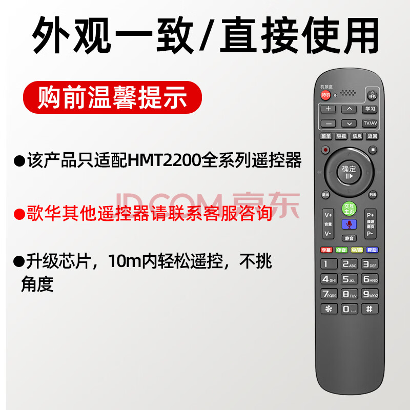 商品相册:宜百利 适用北京歌华有线电视遥控器 HMT2200系列机顶盒高遥控器清数字电视通用 黑色赠电池8222第