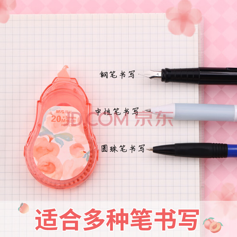 商品相册:晨光(M&G)文具乐桃派对限定系列修正带20m 学习用品高颜值隐形改正带涂改带 颜色随机第