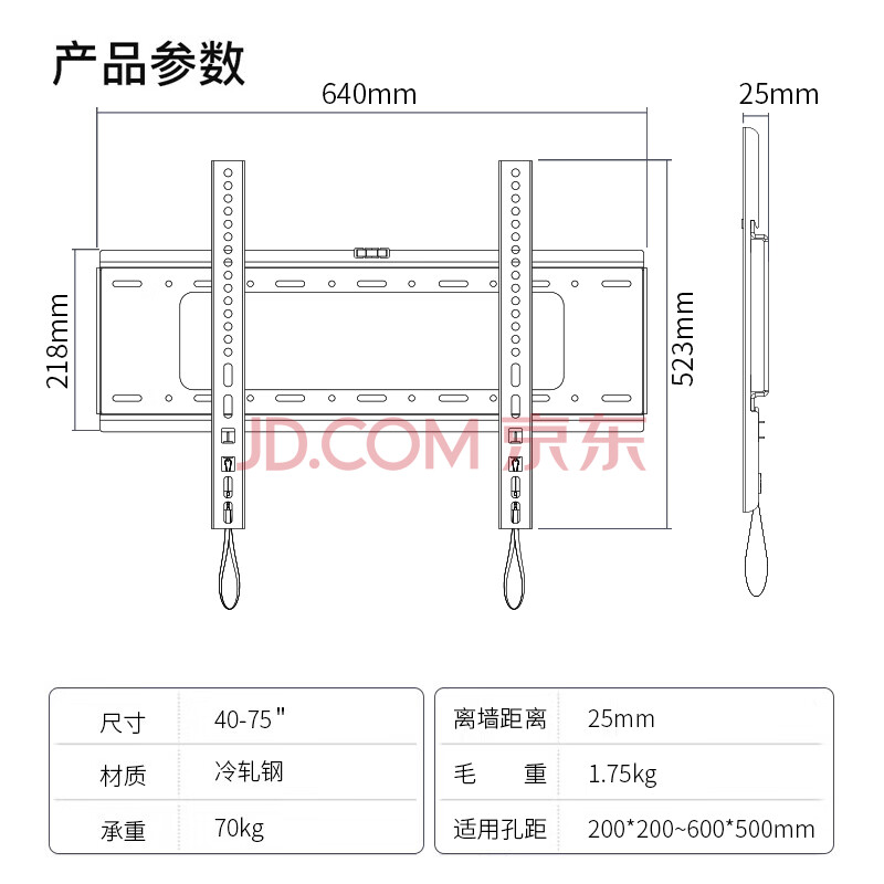 商品相册:ProPre(40-75英寸)电视机挂架固定电视壁挂架支架品牌通用适用于海信创维TCL华为智慧屏电视架承重70kg第
