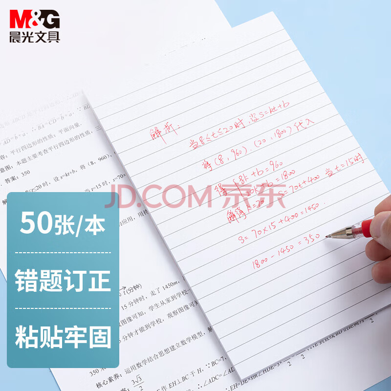 商品相册:晨光(M&G)文具a5横线便利贴标签贴高颜值大号错题记事便签贴纸n次学生便签本子白143*215mm YS-108开学必备第