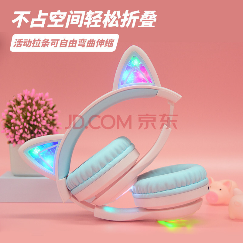 商品相册:Tribit趣倍头戴式无线蓝牙儿童耳机可爱发光音乐网课带麦低分贝粉色学生猫耳朵生日六一儿童节礼物女孩第