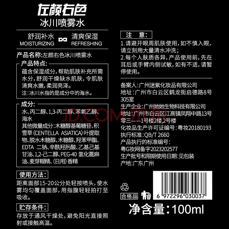 商品相册:左颜右色【郑恺代言】冰川男士爽肤水喷雾100ml保湿柔肤水须后水爽肤水第
