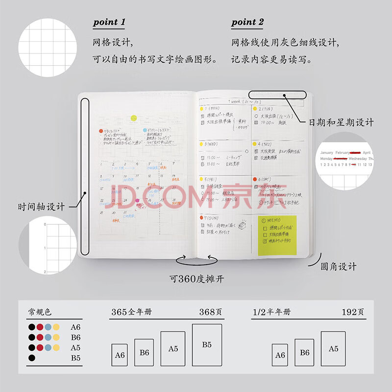 商品相册:STALOGY 笔记本子记事本日记本手帐自填日期方格本 日本大赏368页全年册 B6黑色第
