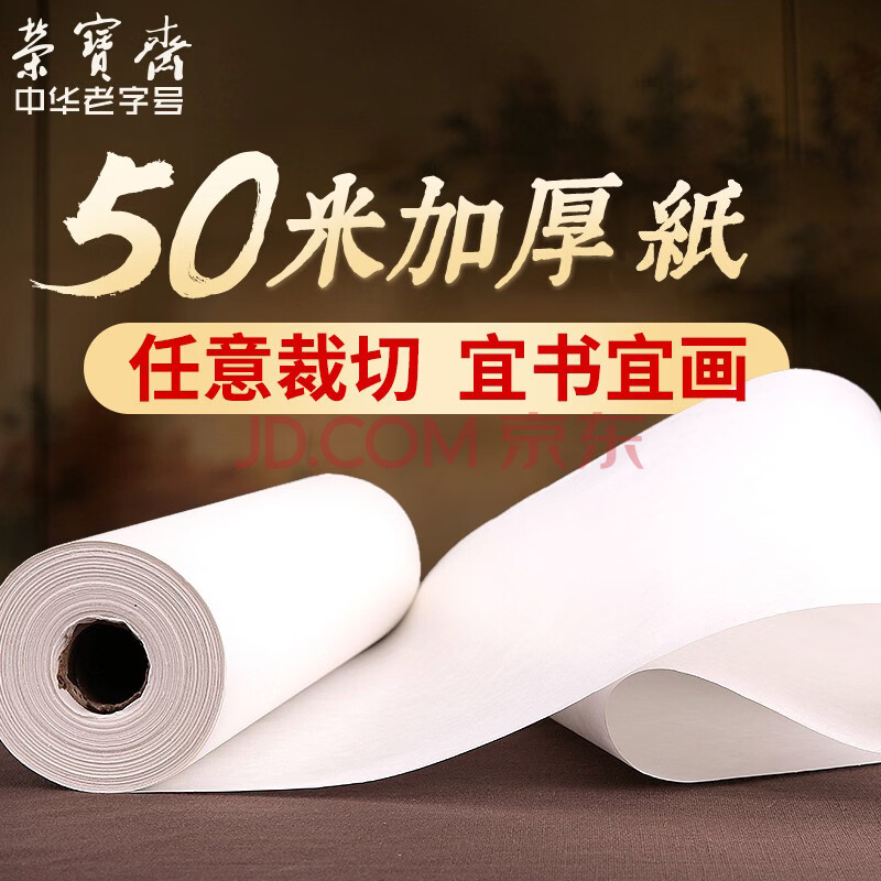 商品相册:荣宝斋 书画宣纸加厚 日星宣纸文房四宝书法水墨长卷 毛笔字练习创作品专用 生宣40厘米*50米书画1卷第