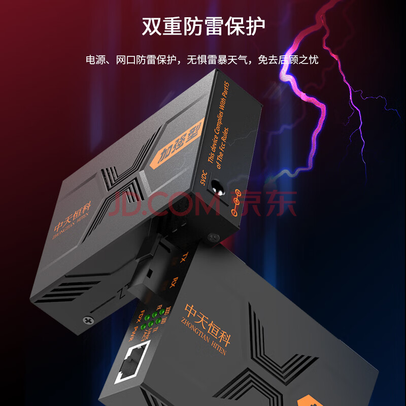 商品相册:中天恒科 SC千兆光纤收发器一对20KM 单模单纤 光电转换器 光纤转网线 1光1电 AB端1对 ZT-8511A/B第