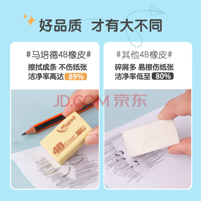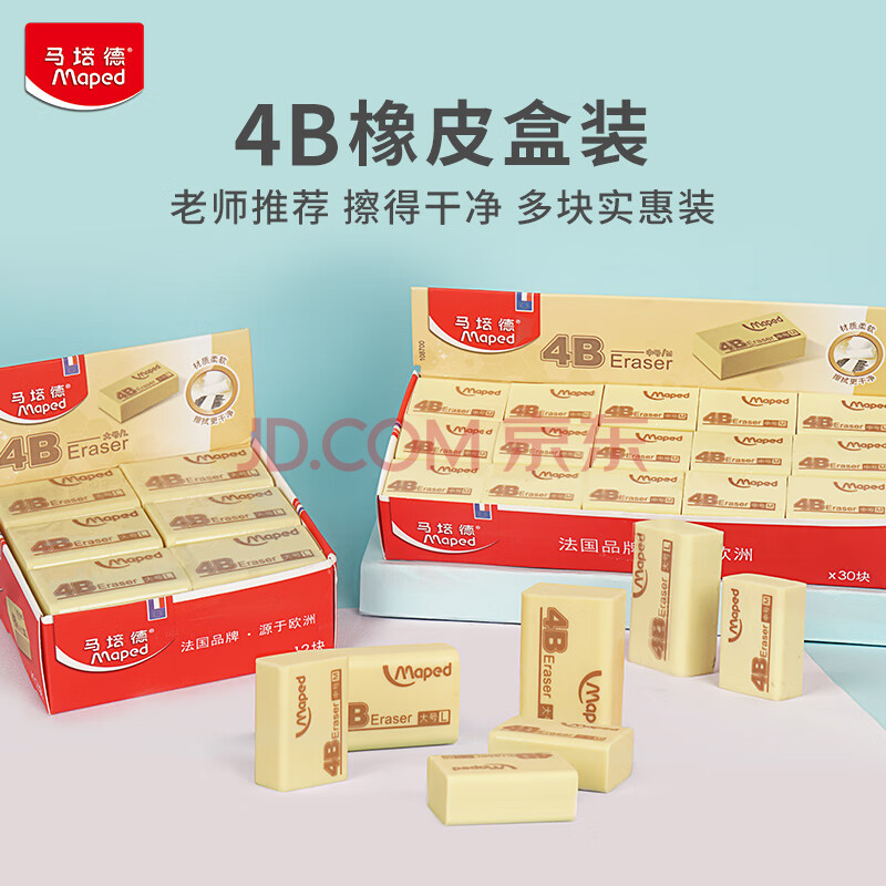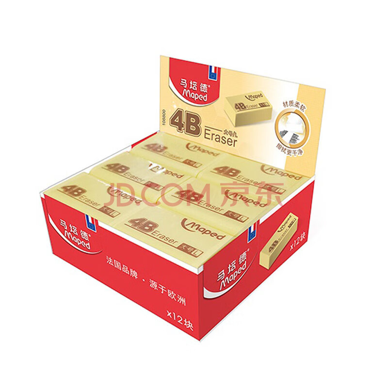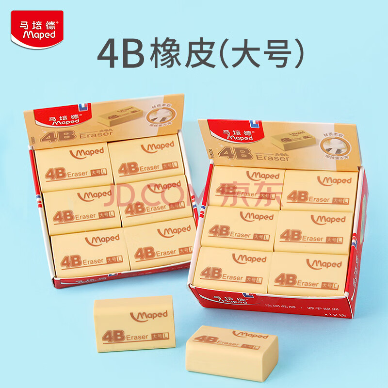 商品相册:马培德(Maped)大号4B橡皮12块装 儿童橡皮擦无屑干净小学生专用美术绘图考试橡皮擦4b黄色开学文具108800CH第