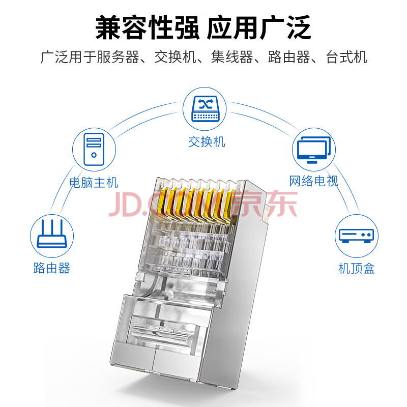 商品相册:秋叶原(CHOSEAL)超五类屏蔽水晶头 网线水晶头 带屏蔽水晶头 10个 QS905SZ10第