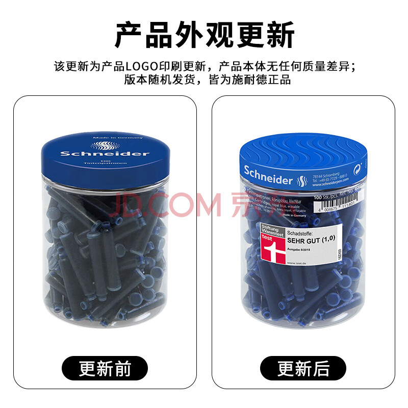 商品相册:施耐德(Schneider)钢笔墨囊墨水胆非碳素不堵笔德国进口欧标钢笔适用开学必备用品100支装 蓝黑色6823第