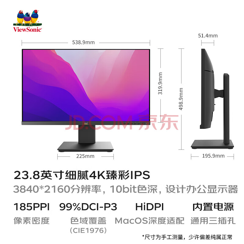 商品相册:优派23.8英寸4K超清显示器IPS 10bit窄边框 升降旋转 爱眼不闪屏HDMI PS4电脑显示器24VX2479-4K-HD第
