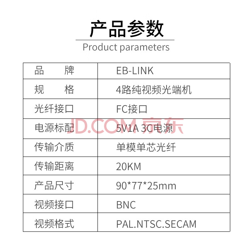 商品相册:EB-LINK EB-RS-4V视频光端机4路纯视频数字模拟高清监控光纤延长器单模单芯FC接口第