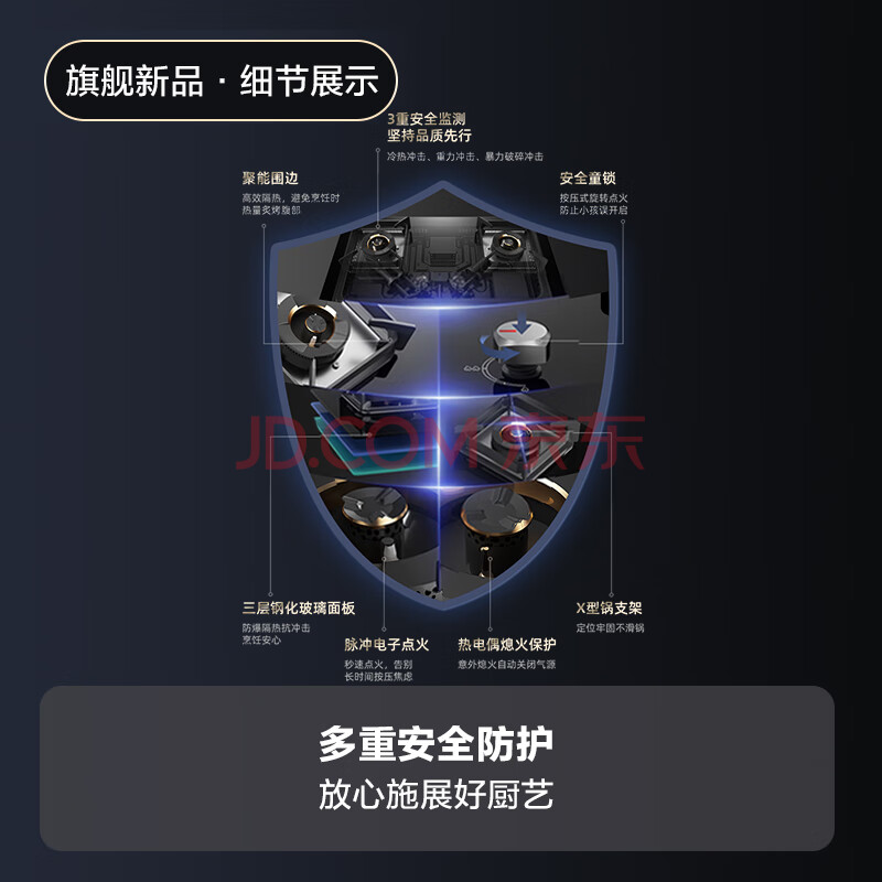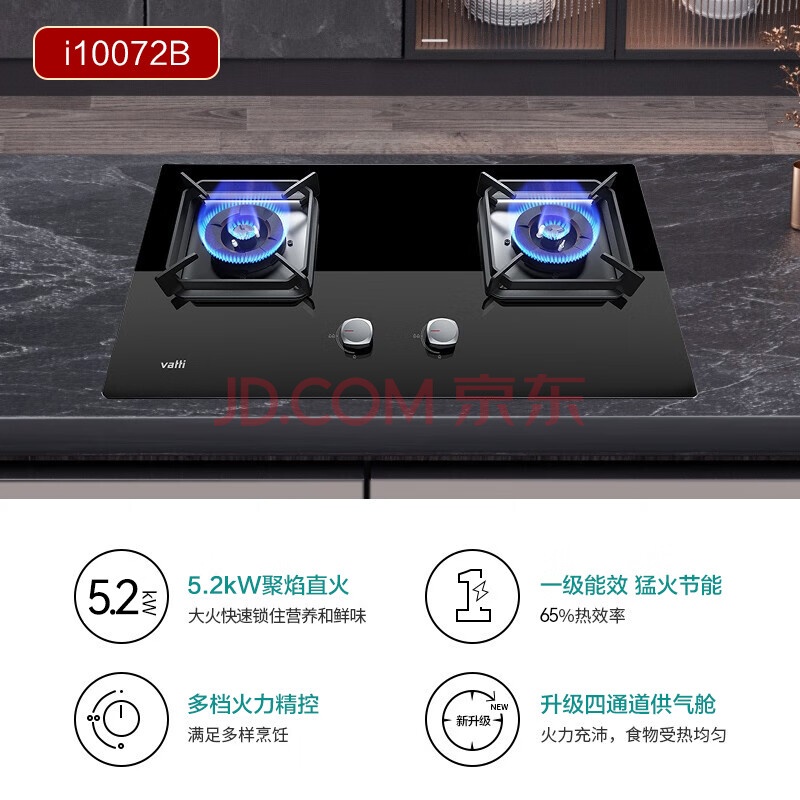 商品相册:华帝燃气灶天然气嵌入式双灶5.2kW猛火煤气炉灶台灶具 可拆卸炉头i10072B【天然气产品】第