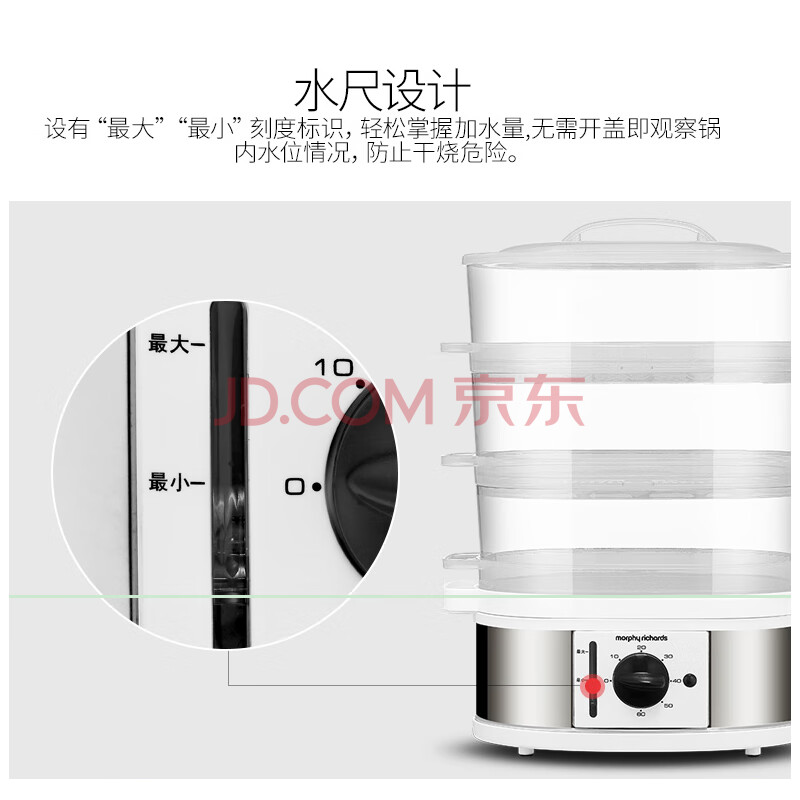 商品相册:摩飞电器(Morphyrichards)多功能电蒸笼 电热锅多用途蒸包子机多层蒸屉蒸蛋器v三层大容量9L可定时MR1148第