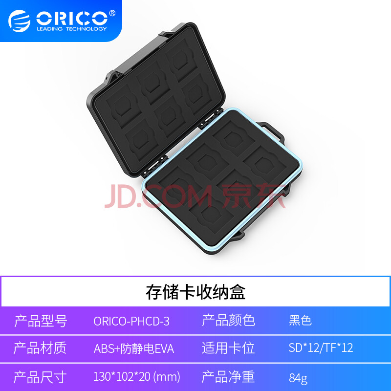 商品相册:奥睿科(ORICO) SD/TF内存卡收纳盒 硬盘/相机存储卡保护包盒/卡盒 防水/防尘防震【12SD+12TF】第