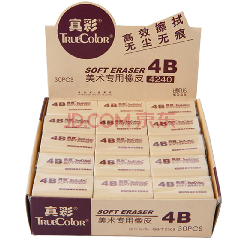 商品相册:真彩(TRUECOLOR)学生考试美术绘图4B橡皮擦 黄色30个/盒*2盒 4240第